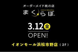 ニュース ヘルスケア産業好調!静岡県2店舗目の「まくらぼ イオンモール浜松市野店」3月12日OPEN! オーダーメイド枕の店「まくらぼ」(以下、まくらぼ)を運営する、Futonto株式会社(本社:東京都町田市 代表取締役社長:齊藤 淨一)は、2021年3月12日(金)、静岡県では2店舗目となる「まくらぼ イオンモール浜松市野店」を浜松市にオー... ニュース